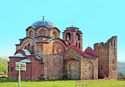 К одноглавым 4-столпным крестово-купольным милутиновским постройкам с одной апсидой относится небольшая ц. вмч. Никиты в Чучере (ок. 1307, см. Никитский монастырь). Типология, кладка, членение фасадов глухими арками, применение приемов керамо-пластической декорации свидетельствуют о влиянии греч. архитектурной традиции. В мон-ре Студеница кор. блгв. Милутин построил однонефную ц. праведных Иоакима и Анны (Кралева церковь, 1313-1314) со ступенчато повышающимися сводами, традиционными для рашских памятников, но из кирпича и с граненой апсидой, что характерно для византийской традиции.
