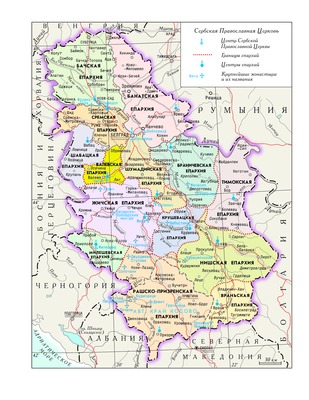 В состав СПЦ входят архиепископия, 4 митрополии и 39 епархий. На территории Сербии расположены Белградско-Карловацкая митрополия, к-рой управляет патриарх, а также Банатская епархия, Бачская епархия, Браничевская епархия, Валевская епархия (кафедра в г. Валево), Враньская епархия, Жичская епархия, Крушевацкая епархия, Милешевская епархия, Нишская епархия, Рашско-Призренская епархия, Сремская епархия, Тимокская епархия, Шабацкая (кафедра в г. Шабац) и Шумадийская (кафедра в г. Крагуевац) епархии. На территории Сев. Македонии (см. в ст. Македония, гос-во) расположены Охридская архиепископия (см. ст. Православная Охридская архиепископия), Брегалницкая, Полошско-Кумановская и Стобийская епархии. На территории Черногории расположены Черногорская и Приморская митрополия и Будимлянско-Никшичская епархия. На территории Хорватии расположены Загребско-Люблянская митрополия (см. в ст. Загребско-Люблянская и всей Италии епархия), Горно-Карловацкая епархия, Далматинская епархия, Осечко-Польская и Бараньская епархия (кафедра в с. Даль) и Славонская епархия (кафедра в г. Пакрац). На территории Боснии и Герцеговины расположены Дабро-Босанская митрополия (см. в ст. Дабро-Босанская епархия), Баня-Лукская епархия, Бихачско-Петровацкая епархия, Захумско-Герцеговинская епархия (см. Захумско-Герцеговинская и Приморская епархия) и Зворникско-Тузланская епархия. Также действуют Австралийско-Новозеландская епархия (Австралия и Нов. Зеландия, кафедра в г. Элейн (шт. Виктория, Австралия)), Австрийско-Швейцарская епархия (Австрия, Италия, Мальта и Швейцария, кафедра в г. Вене), Будимская епархия, Буэнос-Айресская и Южно-Центрально-Среднеамериканская (страны Юж. Америки, кафедра в г. Буэнос-Айресе), Великобритании и Скандинавии епархия (Великобритания, Дания, Исландия, Норвегия, Финляндия, Швеция), Восточноамериканская епархия, Западноамериканская епархия, Западноевропейская епархия, Канадская епархия, Новограчаницкая и Среднезападноамериканская епархия (см. в ст. Новограчаницкая епархия), Темишварская (Румыния, см. раздел в ст. Румыния), Франкфуртская и всей Германии епархия (Германия, кафедра в г. Франкфурте). Епархии делятся на наместничества, приходы и мон-ри. Численность верующих - ок. 12 млн чел. Клир СПЦ насчитывает 50 иерархов, в т. ч. 5 викарных епископов - Диоклийского, Моравичского, Мохачского, Ремезианского и Топлицкого. Действуют ок. 2,6 тыс. приходов, на которых служат 2,5 тыс. священников. В ок. 400 мон-рях, в т. ч. 3 ставропигиальных - Печская Патриархия, Будисавци и во имя свт. Саввы Сербского в г. Либертивилле (шт. Иллинойс, США; основан в 1926) - подвизаются ок. 600 монахов и 900 монахинь (2011). Богослужения совершаются на серб. языке (кириллица), по юлианскому календарю.
