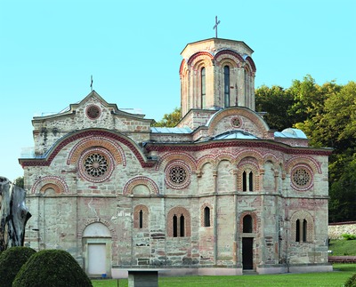 Дечанский монастырь (1327-1335, ок. 1350 - нартекс), основаный кор. Стефаном III, был достроен при его наследнике - Стефане IV Уроше Душане Сильном (1331-1355), который благодаря расширению границ, провозглашению себя в 1346 г. царем и присвоению СПЦ статуса Патриархата превратил Сербию в империю и сделал сильнейшей державой на Балканах. Однако храмовое строительство эпохи Стефана Душана не обнаруживает наличия единой школы или направления ни по характеру заказа, ни по типологическим и стилистическим характеристикам.
