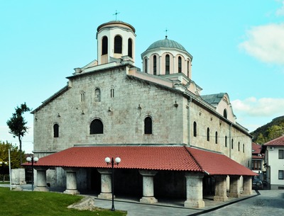 В мон-ре Печская Патриархия, с кон. XIII в. ставшем кафедрой Сербских архиепископов, к уже существовавшему храму св. Апостолов были пристроены еще 2: по заказу архиеп. свт. Никодима - однонефная купольная ц. вмч. Димитрия Солунского (1321-1324) с севера, по заказу архиеп. свт. Даниила II (1324-1337) - крестово-купольная 4-столпная ц. Богородицы Одигитрии (между 1324 и 1330) с юго-вост. приделом свт. Николая. В зап. части все 3 храма объединены общим нартексом.