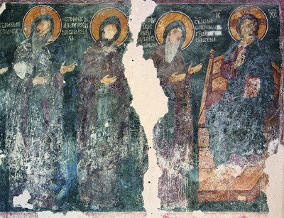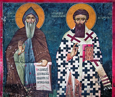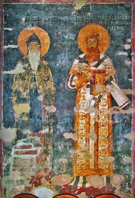 Парные изображения С. М. и свт. Саввы I также прочно вошли в состав иконографических программ мн. памятников позднепалеологовского и поствизантийского периодов (церкви праведных Иоакима и Анны в мон-ре Студеница (1314-1315), вмч. Никиты в Чучере близ Скопье (2-е десятилетие XIV в.), кафоликон монастыря Хиландар (1318-1320) и др.) (Милошевић. 1979. С. 302-303). На фреске юж. фасада охридской ц. свт. Николая Больничного (1345) помимо С. М. и свт. Саввы I изображены также сербский правитель Стефан Душан, его супруга кор. Елена, его сын молодой кор. Урош, патрон храма свт. Николай и архиеп. Охридский Николай. Групповой портрет с включением ряда исторических личностей мог возникнуть как реакция на достигнутый компромисс между сербскими властями и Охридом, присоединенным к Сербии в 1334 г.: Охридская архиепископия сохраняла автокефалию, но признавала серб. власть и автокефальность Сербской Православной Церкви. В данной композиции С. М. изображен весьма схематично, с более короткой бородой и без свитка, что объясняется, по всей видимости, малой осведомленностью художника.