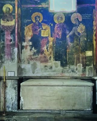 В заново отстроенной и расписанной в 1-й четв. XIV в. ц. Введения во храм Пресв. Богородицы в афонском мон-ре Хиландар С. М. изображен дважды: на пилястре в юго-зап. углу зап. травеи наоса - с молитвенно воздетыми руками вместе с 1-м Сербским архиепископом свт. Саввой I Сербским, кор. блгв. Милутином и со св. покровителем рода Неманичей - архидиак. Стефаном Первомучеником, а также на пилястре вост. стены нартекса, рядом с тронным образом Пресв. Богородицы с Младенцем. В росписях хиландарского нартекса также присутствуют серб. кор. св. Стефан Урош III Дечанский, его сын царь Стефан Урош IV Душан (?) и визант. императоры Андроник II и Андроник III Палеологи (Тодић Б. Српско сликарство у доба краља Милутина. Београд, 1998. С. 353-354; Vojvodić. 1998. Р. 250).