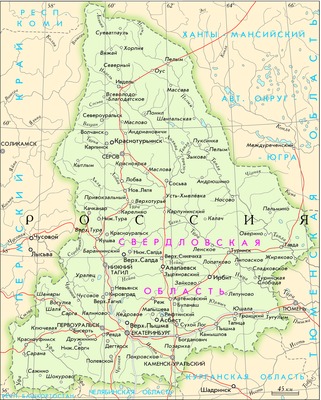 субъект РФ, входит в состав Уральского федерального окр. Расположена в центральной части Урала, граничит на западе с Пермским краем, на севере с Республикой Коми и Ханты-Мансийским автономным округом, на востоке с Тюменской областью, на юге с Курганской и Челябинской областями и Башкортостаном. Площадь - 194 307 кв. км. Население - 4 290 067 чел. (2021) (4 044 416 чел. в 1959, 4 716 768 чел. в 1989, 4 320 677 чел. в 2014). Национальный состав: русские (90,6%), татары (3,5%), украинцы (0,9%), башкиры (0,8%), немцы (0,3%) и др. (2010). Адм. центр - Екатеринбург (14 окт. 1924 - 4 сент. 1991 Свердловск). С. о. разделена на 30 районов (2017), включает 25 городов обл. значения, 4 закрытых административно-территориальных образования (ЗАТО), 26 поселков городского типа, 1841 сельский населенный пункт.
