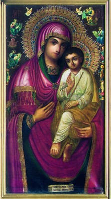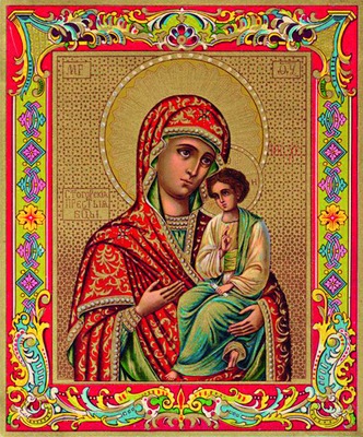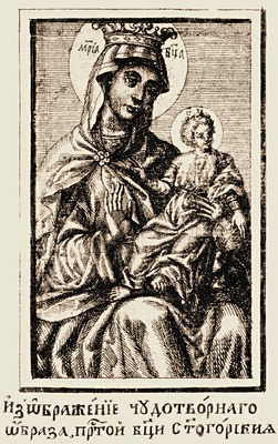 (празд. 17 июля), чудотворный образ Святогорской в честь Успения Пресвятой Богородицы мужской лавры в г. Святогорске (в 1964-2003 Славяногорск) Донецкой обл. В публикациях 2-й пол. XIX в. отмечено, что считавшаяся «издревле» чудотворной С. и. была одной из немногих, к-рая пережила упразднение обители в 1787 г. и вернулась в мон-рь после его возобновления в 1844 г. (не сохр.). Наиболее раннее упоминание о чудотворной иконе с таким названием и указанием ее местонахождения (при фантастической дате явления) вошло в рукописный сборник кратких сказаний о чтимых богородичных иконах «Солнце Пресветлое», составленный в Москве в 1-й четв. XVIII в. (МГУ НБ. № 293. Л. 122 об.- 123). В тексте сказания говорится, что С. и. явилась 1 сент. 6600 (1092) г. «в Малоросийской земле, за рекою Малым Донцом, на Крымской степи, близ Тору (на р. Тор, ныне Казённый Торец.- Ред.), места зовомо, идеже соль варят». Икона находилась в ц. Пресв. Богородицы, выросшей, как гора из земли. Источник этого сказания неизвестен, оно приводится со ссылкой на «Летописец греческий». Текст проиллюстрирован гравюрой работы Г. П. Тепчегорского.