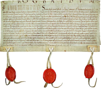 В 1274 г. мон. Примат написал 1-ю часть «Больших французских хроник» (Grandes Chroniques de France), излагающих на старофранц. языке историю Франции от легендарных троянских прародителей франков до кор. Филиппа II Августа (1180-1223). Автор основывался на лат. исторических сочинениях, созданных в аббатстве. Мон. Примат перевел их на франц. язык, но часто не задумывался о том, чтобы унифицировать стиль повествования, а иногда и весьма различавшиеся точки зрения. Монахи С.-Д. продолжали «Большие французские хроники» до 1340 г., после чего кризисы, связанные с эпидемией чумы (т. н. черная смерть) и со Столетней войной (1337-1453), заставили их прервать работу, к-рая больше не возобновлялась.