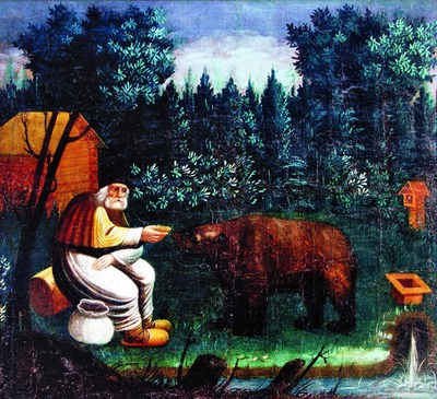 Рядом с лесной келлией, на огороде, находились неск. ульев для пчел и мшаник для зимнего хранения колод. Как известно, медведи медовый запах чувствуют издалека, поэтому нередко наведывались к преподобному. Литографическое изображение С., кормящего медведя хлебом, было очень распространено в дореволюционное время.