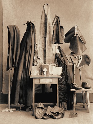 В келье-алтаре Преображенской ц. в центре располагался престол, в сев.-вост. углу - жертвенник. На престоле (в нач. XX в.) помещался медный литой 8-конечный крест С.- благословение матери, его преподобный постоянно носил на груди и благословлял им приходящих к нему (фотографии креста нач. XX в. см.: Серафим (Чичагов). 1903. Вклейка между с. 500 и с. 501; этот крест (с херувимами на штифтах) также снят на фоне широкой «двойной» епитрахили, где видны поручь, мантия, Евангелие, Минея-Четья, см.: Поселянин. 2003. С. 96). В 1903 г. при освидетельствовании св. мощей преподобного «под руками приснопамятного о. Серафима обнаружен медный литой крест размером приблизительно в три вершка» (Акт освидетельствования св. останков прп. Серафима, Саровского Чудотворца // МОб. 1903. № 11. С. 5).