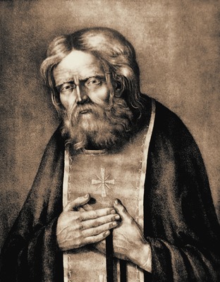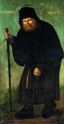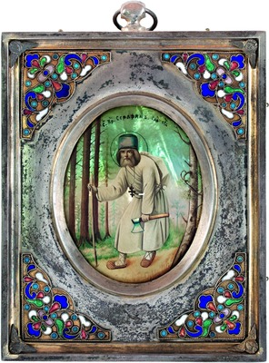 Ок. 1913 г. написана большая поясная икона святого (ГМИР), происходящая из Феодоровского собора в С.-Петербурге, выстроенного в 1911-1915 гг. к 300-летию Дома Романовых по проекту архит. С. С. Кричинского. Иконография С. со скрещенными на груди руками восходит к его ранним портретам. В лике, исполненном в иконописной манере (икона написана маслом), переданы портретные черты подвижника.