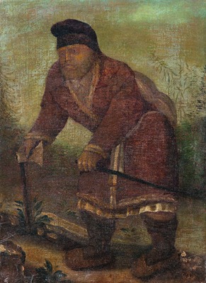 По-видимому, при жизни С. появились его изображения в клобуке, в полумантии, на пути в пустыньку, с суковатой палкой и четками в руках (ростовые, поколенные, оплечные). На фоторепродукции кон. XIX - нач. XX в. (частное собрание) сделана надпись: «Снимок с портрета преподобного отца Серафима Саровского Чудотворца, писанного в 1833 году Е. М. Журавлевой (рожденной Бахметьевой)» (Моск. ж. 2003. № 11. С. 2-3; фотография принадлежала архим. Борису (Холчеву)). Портрет С. такого извода (по преданию, прижизненный) находится в Новодивеевском монастыре в Америке (Рус. паломник. Platina, 2004. № 29. С. 13). К 40-м гг. XIX в. относятся живописные портреты святого в клобуке разных иконографических вариантов из Патриаршей резиденции в Москве, ГИМ, Серафимова Дивеевского мон-ря, частных собраний. С. писали в светлом балахоне, полушубке или темной рясе, в клобуке с полумантией или в скуфье на фоне неба, невысокого леса и каменистого позема, или дремучей чащи. Этот извод запечатлен на 1-й гравюре, исполненной в 1839 г. мастером А. Г. Афанасьевым для жизнеописания саровского пустынника схим. прп. Марка Молчальника (Кр. начертание жизни старца Саровской пуст., схимонаха и пустынника Марка. М., 1839); на 1-й крупноформатной литографии, изданной в 1840 г. в московской мастерской М. П. Щурова, вероятно, по живописному оригиналу подполковника В. Ф. Ахлёстышева (РГБ; см.: ЦГИАМ. Ф. 2393. Оп. 1. Ед. 50. Л. 25; Ед. 1697. Л. 2; эстамп соответствует описанию портрета в натуральный рост, к-рый находился на паперти Успенской ц. Гефсиманского скита при Троице-Сергиевой лавре, был вложен туда наместником Троице-Сергиевой лавры прп. Антонием (Медведевым)), на мн. книжных эстампах. К этому типу принадлежали портреты из воссозданной кельи старца в дальней пустыньке, такие изображения особенно любили писать в Дивеевской обители (ГМИР, Серафимов Дивеевский монастырь, собрание митр. Нижегородского Георгия (Данилова)).