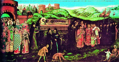 В XIX в. легенда о С. и Г. получила новое развитие, возникло предание о 4-кратном переносе мощей С. и Г., к-рое распространялось в изданиях мон-ря. При игум. Иннокентии (1801-1823) получает оформление легенда о том, что мощи преподобных прибыли на судне и были выгружены на скалу, в честь этого события на ней была построена Покровская часовня. Пещера, в к-рой, как ранее считалось, жили преподобные, с этого времени связывалась с именем прп. Александра Свирского.