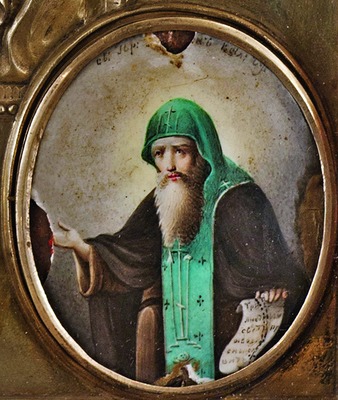 В 90-х гг. XVIII - нач. XIX в. традиция изображения преподобных развивалась под воздействием распространявшихся приемов академической живописи. Важным произведением стала икона из местного ряда Преображенского собора Валаамского мон-ря (авторская живопись находится под поздней записью, оклад 1854 г., Нововалаамский мон-рь; см.: Там же. С. 376, 606-607. Кат. 64). Святые, облаченные в черные мантии и округлые схимнические куколи, предстоят Спасу Нерукотворному, между ними видны монастырские сооружения. У С. ладони молитвенно сложены у груди, у Г. руки приподняты в вопрошающем жесте. Возможно, мастера ориентировались на образцы из Киево-Печерской лавры и Саровского мон-ря, подвижники к-рых изображались в куколях.