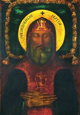 Встречаются 2 варианта текстов на свитках: у С.- «Се удалихся бегая и водворихся в пустыни...» (Пс 54. 8) и «Братие покаряйтеся благоверным царем и великим князем»; у Г.- «Се что добро или что красно но еже жити братие...» (Пс 132. 1) и «Трисолнечный свет православно славим и Пресвятей Троице покланяемся».