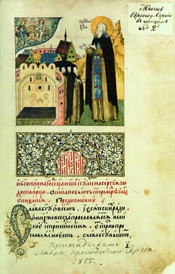 Дважды иллюстрировалась Пространная редакция Жития. В кон. XVI в., по последним данным, в 1592 г., в связи с 200-летием со дня кончины преподобного, была создана лицевая рукопись Жития С. Р., включившая также Похвальное слово С. Р. и Молитву преподобному (Лёвочкин. 1994. С. 50; Он же. 2010. С. 33-34 - по мнению исследователя, создание рукописи связано с гибелью в 1591 св. царевича Димитрия Иоанновича (О. Г. Ульянов полагал, что раскраска иллюстраций была завершена лишь в кон. XVII в. Ульянов. 1996. С. 181)). Рукопись долгое время хранилась в ризнице Троице-Сергиева мон-ря, с марта 1931 г.- в РГБ (РГБ. Ф. 304/III. № 21). Считается, что она происходит из царской книгописной мастерской (Щепкина М. В. Царские лицевые рукописи кон. XVI - нач. XVII вв.: Худож. и бытовые особенности: Канд. дис. М., 1945; Попов Г. В. Книжная культура XVI в. и художественное оформление Повести о Зосиме и Савватии // Повесть о Зосиме и Савватии. М., 1986. С. 85, 103; Клосс. 1998. С. 217; Лёвочкин. 2010. С. 34). Рукопись богато украшена: содержит 652 миниатюры, заставки и инициалы старопечатного стиля; переплет представляет собой доски, обтянутые камкой вишневого цвета, поверх которой прикреплены серебряные средники и наугольники, на верхней крышке сохранились серебряные гнезда для застежек (застежки утрачены) (Лёвочкин. 2010. С. 33). Миниатюры отличаются богатой цветовой гаммой и активным использованием золота, их характерной особенностью являются подписи над персонажами, выполненные теми же чернилами, что и текст. Миниатюры рукописи изучаются с XIX в. как исторический источник (эта проблематика исследована в работах: Третьяков. 1932; Арциховский. 1944. С. 88-90, 176-198; Богоявленский. 1960. С. 265-269; Горский. 1965; Хорошкевич. 1966). В качестве источника по истории рус. архитектуры миниатюры рассматривались в работах: Суслов. 1888; Сидорова. 1958; Ульянов. 1996. Отмечено, что они отличаются исторической точностью, как правило, верно передают бытовые, военные и др. подробности эпохи кон. XVI в., современной периоду создания рукописи (этот вывод был сделан А. В. Арциховским, подробно проанализировавшим миниатюры с привлечением большого археологического материала (Арциховский. 1944. С. 88-90, 176-198)). В ряде работ миниатюры привлекаются как источники при выяснении времени и обстоятельств тех или иных событий, для установления фактов жизни исторических личностей, в частности прп. Андрея Рублёва (см., напр.: Успенские М. И. и В. И. Заметки о древнерус. иконописании: Известные иконописцы и их произведения: Св. Алимпий и Андрей Рублёв. СПб., 1901. С. 40-42; Грабарь И. Э. Андрей Рублев: Очерк творчества художника по данным реставрационных работ 1918-1925 гг. // Вопр. реставрации: Сб. М., 1926. Вып. 1. С. 15; Кузьмина В. Д. Древнерус. письменные источники об Андрее Рублеве // Андрей Рублев и его эпоха. М., 1971. С. 114-115; Ульянов. 1996; Белоброва. О лицевом списке. 2005. С. 244), купцов Ермолиных (Воронин. 1958). К миниатюрам рукописи как к дополнительному источнику обращаются также при решении текстологических (Сазонов. 1994) или искусствоведческих проблем (Грибов Ю. А. Образ Ивана Грозного в трактовке посадских художников посл. четв. XVII в. // Народное искусство России: Традиции и стиль. М., 1995. С. 13-28. (Тр. ГИМ; 86)). В последнее время миниатюры лицевого Жития С. Р. исследуются как особый изобразительный вариант Жития, обладающий своей спецификой при интерпретации лит. текста (наиболее подробное освещение этот вариант получил в работах Н. Э. Юфер