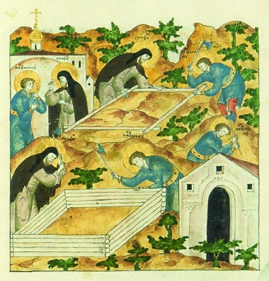 По предположению прп. Епифания («мню убо»), это произошло в начале правления вел. кн. Симеона Иоанновича Гордого (1340-1353). В таком случае поселение братьев в «пустыне» и строительство 1-го храма буд. обители следует датировать нач. 40-х гг. XIV в. (ок. 1342). Через нек-рое время, не выдержав «труд пустынный, житие скръбно, житие жестко», Стефан покинул брата и ушел в Москву, где поселился в муж. в честь Богоявления монастыре; там же в это время подвизался и буд. митр. Киевский св. Алексий (Бяконт). Впосл. прп. Стефан был рукоположен во иерея и стал, как пишет прп. Епифаний, духовником вел. кн. Симеона Гордого и «старейших» московских бояр (Клосс. 1998. С. 308) (тем не менее в духовной грамоте вел. кн. Симеона 1353 г. не упом. Стефан, духовным отцом там назван свящ. Евсевий - ДДГ. С. 13-14. № 3).