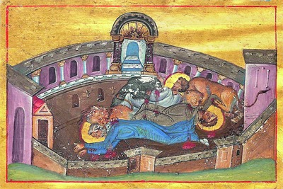 Араб. версия Мученичества отличается нек-рыми деталями: С. е., Л. д. и М. ч. были схвачены отцом Иулиана, к-рый имел большой авторитет у правителя (дукса) Эмесы. Он провел их с позором по всему городу, затем повелел бросить в темницу. Через 40 дней состоялся 1-й допрос, после к-рого святых вновь заключили под стражу; о поездке в Тир не сообщается. Когда С. е., Л. д. и М. ч. оказались в театре, свирепые львы не тронули их, а с неба пошел огненный дождь с градом, после чего мн. язычники уверовали во Христа. Об этом было доложено дуксу, к-рый тотчас прибыл к театру с войском, схватил С. е., Л. д. и М. ч. и всех уверовавших язычников и отрубил им головы 10 марта.