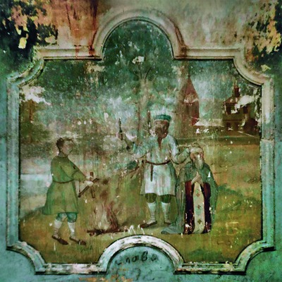 В составе группы Устюжских святых С. представлен в стенописи верхнего храма Рождества св. Иоанна Предтечи Георгиевской ц. в с. Коскове Кичменско-Городецкого р-на Вологодской обл., выполненной в масляной технике и стилистике академической живописи устюжским мастером П. Я. Костровым в кон. XIX - нач. XX в. (до 1910). В фигурном орнаментированном обрамлении на сев. стене в нижнем ярусе изображены свт. Стефан Пермский, блаженные Прокопий и Иоанн Устюжские и С. Последний представлен крайним справа на переднем плане, фронтально, в монашеском облачении (зеленая ряса, вишневая мантия и красно-коричневая схима), правой рукой благословляет, в левой - развернутый вниз свиток с пространным текстом (7 строк). Образ С. с короткими седыми волосами и бородой близок по иконографии, цвету одежд и стилистическим особенностям к его изображению на иконе «Успение Пресв. Богородицы, и избранные святые...» и, возможно, принадлежит кисти того же устюжского мастера.