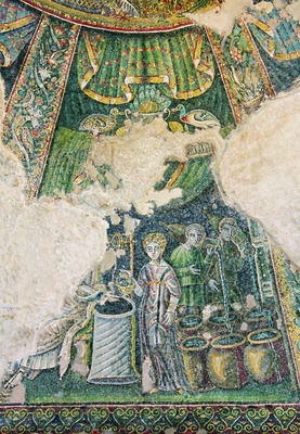 Беседа Христа с самарянкой, Добрый пастырь и символ евангелиста Луки. Мозаики подкупольного пространства. 2-я пол.— 3-я четв. V в. Фото: И. А. Орецкая
