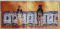 Преподобные Андроник и Афанасия. Миниатюра из Минология. Нач. XI в. (ГИМ)
