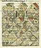 Прп. Пафнутий Боровский благословляет своего ученика Иосифа на игуменство. Клеймо рамы с житием прп. Иосифа Волоц-кого. Ок. 1697 г. Иконописец Г. Антонов (ЦМиАР)