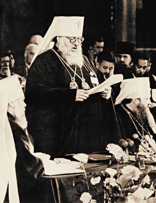 После перерыва митр. Алексий (Ридигер) зачитал доклад «О миротворческой деятельности Русской Православной Церкви». Миротворчество, как указывал докладчик, является исполнением Божественных заповедей по утверждению мира в человеческом обществе и живой и деятельной христ. любви к своему народу и отечеству. Христианское миротворчество, подчеркивал митр. Алексий, неотделимо от патриотизма: «...патриотизм является нормальным состоянием христианина. В то же время, в отличие от узкого национализма, патриотизм не делает христианина равнодушным к интересам других народов, первым из которых является требование мира. Служить своему отечеству - это значит служить благу других народов, всего человечества, на судьбах которого отражается то, как каждый народ, каждое государство исполняет свое назначение». Митр. Алексий привел исторические примеры миротворческой миссии и патриотизма Русской Церкви с первых дней ее существования: усилия по прекращению княжеских усобиц, помощь в собирании и укреплении Русского гос-ва вокруг Москвы, подвиги веры во время Смутного времени. Особенно подробно докладчик остановился на патриотической деятельности Церкви во время Великой Отечественной войны, на завершающем этапе к-рой Поместный Собор РПЦ 1945 г. призвал христиан всех стран к неустанной борьбе за торжество во всем мире свободы, истины и добра на вечные времена. Далее митр. Алексий сделал обстоятельный обзор участия представителей РПЦ во всемирном движении сторонников мира, отметив особый вклад в это дело патриарха Алексия I, митрополитов Пимена и Никодима и упомянув о плодотворной деятельности митр. бывш. Крутицкого и Коломенского Николая (Ярушевича). Архиеп. Василий (Кривошеин) отметил, что положительно оцениваемое в докладе митр. Алексия участие Русской Церкви в Фонде мира в действительности является формой принудительного и часто разорительного для приходов сбора денежных средств в распоряжение Советского гос-ва.