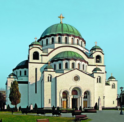 возведен (1935-2004) на месте сожжения мощей основателя СПЦ, архиеп. Сербского свт. Саввы I. Как сообщают многочисленные источники, 27 апр. 1594 г. на холме Врачар в предместье Белграда (ныне юж. окраина города) турки сожгли мощи свт. Саввы I. Уничтожение главной святыни серб. народа - мощей основателя Сербской Церкви, должно было стать наказанием сербам за разжигание антиосманского восстания. Но упоминания в поздних источниках как иных датировок уничтожения святыни (1586, 1595, 1596, 1599, 1605, 1667, 1688, 1689, 1692, 1697), так и о пребывании мощей свт. Саввы в мон-ре Милешева, стали основанием для дискуссии исследователей о судьбе мощей и об обстоятельствах их уничтожения. Помимо сомнения в дате этой карательной акции вопросы вызывал и выбор места ее проведения, поскольку границы Белграда в тот период находились в значительном удалении от холма Врачар. Что касается упоминаний о пребывании мощей свт. Саввы в разных местах в более позднее время, то скорее всего они относились не ко всей святыне, а к отделенным от нее в разное время фрагментам. Несмотря на все противоречия относительно времени, места и обстоятельств сожжения святыни, в источниках отражена традиция связывать это событие именно с холмом Врачар, на к-ром в память об этом регулярно устанавливался поклонный крест.