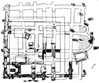 Для строительства Д. ц. кн. Владимир в 989 г. отправил послов в К-поль, к-рые привели в Киев «мастеры от Грек» (ПВЛ. С. 54). Данные источника подтверждаются многочисленными греч. граффити, к-рые были заметны на сохранившейся юго-зап. части Д. ц. еще в сер. XVII в. В плане Д. ц. (42´ 34 м) вычленяется композиционное ядро - 3-нефный храм с большим (7´ 6,5 м) подкупольным квадратом и нартексом. С 3 сторон сооружение было окружено галереями с множеством дополнительных объемов. После исследований кон. 30-х гг. ХХ в. считалось, что эти пристройки появились при св. кн. Ярославе (Георгии) Владимировиче. Однако в ходе архитектурно-археологических исследований 2005-2006 гг. было установлено, что галереи были возведены на рубеже Х и ХI вв., при кн. Владимире Святославиче. Д. ц. располагалась в центре архитектурного ансамбля, включавшего неск. каменных построек, возможно, являлась княжеским дворцовым собором. Разрушение большей части фундаментов храма усложняет реконструкцию его первоначального плана и внешнего вида (в наст. время существует 15 реконструкций Д. ц.). Мн. вопросы объемно-пространственного воссоздания собора (количество глав, место расположения лестниц на хоры и др.) остаются нерешенными.