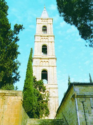 Одновременно с храмом на самой вершине Елеона (828 м над уровнем моря) строилась 64-метровая 4-ярусная колокольня (Русская свеча), самое высокое здание Иерусалима: с балюстрады верхнего яруса на востоке видно Мёртвое м. (по преданию, не хватило 1 саж., чтобы на западе можно было увидеть Средиземное м.). Она увенчана высоким пирамидальным шатром. Это сооружение со сдержанным плоскостным декором уподоблено итал. романским колокольням.