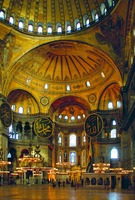 С развитием купольной архитектуры в Византии семантическое значение К. отходит на 2-й план, уступая место куполу как наиболее важному архитектурному и символическому элементу церковного здания. В выстроенном архитекторами Исидором из Милета и Анфимием из Тралл соборе Св. Софии в К-поле (532-537) была применена система из 2 больших полукуполов, или К., поддерживающих купол, и ряда малых К., завершающих полукруглые колонные экседры. При этом в куполе и в К. сделаны окна, что требовало точного расчета конструкции и мастерства создателей. Визант. писатель Прокопий Кесарийский сравнивает купол собора Св. Софии в К-поле с «золотым полушарием, спущенным с неба», а К. (или полукупол) - с серпом луны (полумесяцем) (Прокопий Кесарийский. 1962. Гл. 1. Ст. 33, 46).