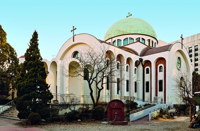 Большинство рус. эмигрантов покинули Сеул еще до начала войны, а немногие оставшиеся - во время войны или после нее. В 1953 г. греч. капеллан архим. Андрей (Халкиопулос), находившийся в Корее в составе вооруженных сил ООН, обнаружил в Сеуле правосл. храм и небольшую общину. Его стараниями здание церкви было восстановлено, а 29 нояб. 1953 г. состоялось освящение храма. С этого времени в нем стали регулярно совершать богослужения. Мирянина Бориса Муна Хичуна, избранного членами правосл. общины в Сеуле, 9 янв. 1954 г. рукоположил во диакона еп. Токийский Ириней (Бекиш), а на следующий день - во иерея. Также в 1954-1955 гг. богослужения совершал архим. Даниил из афонского Иверского мон-ря.