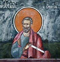 Иконография апостола включает 2 вида изображений: сцену мучения и единоличный образ (в рост или по пояс). Одной из ранних является миниатюра в Минологии имп. Василия II (Vat. gr. 1613. P. 401, 1-я четв. XI в.), на к-рой О. забивают палками 2 палача; из одежд святого - лишь перевязь на бедрах, О. опрокинут на землю, из его ног, на к-рые обрушивают удары мучители, льется кровь. Подобным образом О. представлен на миниатюре еще одного рукописного Минология (ГИМ. Греч. № 376 (Син. греч. № 183). Л. 68 об., 2-я четв. XI в.), а также в настенной минее в росписи ц. вмч. Георгия в Старо-Нагоричино, Македония (1317/18). Ошибочное изображение мучения святого - через посечение мечом (палач держит меч на уровне корпуса поставленного на колени святого) - находится на фреске в притворе собора Св. Троицы мон-ря Козия, Румыния (между 1390 и 1391), в минейном цикле на февр. Единоличные образы О. включены в состав Миней в греко-груз. рукописи (т. н. Афонская книга образцов - РНБ. O. I. 58. Л. 100, кон. XV в.) - в рост, а также в росписи ц. свт. Николая в Пелиново, Черногория (1717-1718),- погрудно.