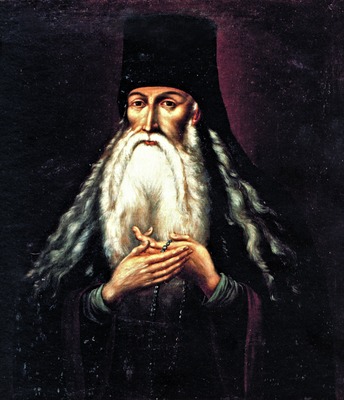 Другой тип изображения представлен неск. поясными или погрудными портретами кон. XVIII - 1-й пол. XIX в. (исполнены в упрощенной стилистической манере) из собраний румын. мон-рей, скита прор. Илии на Афоне. На них широкоплечий П. обращен влево, одет в почти черные одежды, клобук (иногда с воскрилиями) расширяется кверху, волосы менее густые, чем на изображениях 1-й группы, седая борода средней величины. Образ 1-й четв. XIX в. (скит прор. Илии на Афоне) решен в монохромном колорите; борода святого раздвоена на конце, он держит посох и четки. Подобный портрет (находился возле гроба П., очевидно, работы того же автора, но у старца иное направление взгляда, иначе распределена светотень) хранится в музее Нямецкого мон-ря; выбеленная карнация личного на этом портрете соответствует упоминаниям о бледности П. в источниках. К этой иконографической группе относят: портрет из мон-ря Секу (вероятно, принадлежал архим. Тимофею), др. портрет из Нямецкого мон-ря, список 1877-1878 гг. из Новонямецкого мон-ря (Республика Молдова). На 2 портретах того же времени (мон-рь Драгомирна, Румыния; митрополичий дворец в Яссах) необычен жест рук преподобного: они не лежат одна на другой, а симметрично, сжимая четки, расположены перед грудью. На погрудном портрете 1836 г. письма иером. Геласия (музей мон-ря Кэлдэрушани, Румыния) и аналогичном портрете 1-й пол. XIX в. (мон-рь Чея, Румыния) правая рука старца, с четками, лежит на груди. Портрет 80-х гг. XIX в. (скит прор. Илии на Афоне) выполнен в академической светотеневой манере (на груди старца наперсный крест, посох в руке напоминает подлинную сохранившуюся реликвию из Новонямецкого мон-ря).