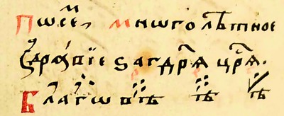 На 1-м этапе (кон. XVI - сер. XVII в.) киноварные П. не фиксируют точную звуковысотность напевов, а указывают на расположение напева в регистрах «верха» или «низа» (