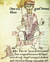 Во время 2-го похода в Италию О., прибыв в Рим с войсками по призыву папы Иоанна XII и получив имп. корону, установил основные принципы взаимоотношений с Папским престолом, которые сохранялись и при его преемниках из Саксонской династии - вплоть до начала самостоятельного правления Оттона III (995-1002). На имп. коронации О. принес клятву соблюдать и защищать интересы Римской Церкви (в обмен на обещания помощи со стороны папы и рим. знати). После коронации в Риме прошел Собор, на к-ром 13 февр. папе Римскому была дарована т. н. Оттоновская привилегия (Privilegium Ottonianum), составленная по образцу аналогичных документов Каролингской эпохи - грамоты 817 г. (Ludovicianum) имп. Людовика Благочестивого (814-840) и Римского уложения 824 г. (Constitutio romana или Lotharianum) имп. Лотаря I (823-855).