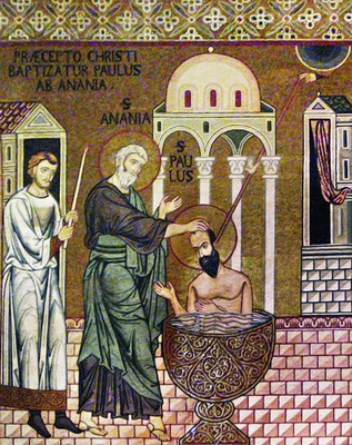События, последовавшие за обращением Савла, в кн. Деяний описаны дважды (Деян 9. 10-19; 22. 12-16). В 1-м случае автор, очевидно, описывает происходившее со слов Анании, во 2-м П. излагает собственный опыт. В речи Анании отмечено только главное: Бог предызбрал П., чтобы он стал апостолом, и для этого крещение было необходимо.