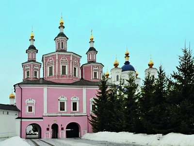 В 1734 г. наместник Варсонофий писал прошение в Синодальный приказ, предлагая разобрать в С. У. м. ветхую каменную Преображенскую ц. и вновь построить ее над зап. ярмарочными вратами. В 1738 г. столяры москвичи Иван Афанасьев и Никита Иванов с калужанином Михаилом Медведевым со товарищи сообщали наместнику иером. Иоилю (Савицкому) об изготовлении иконостаса для этой церкви (Там же. Ед. хр. 261. Л. 1). Надвратная Преображенская ц. была освящена в 1742 г., на ее престол был прислан антиминс, выданный 3 мая того же года за подписью митр. Тверского и Кашинского Митрофана (Слотвинского).