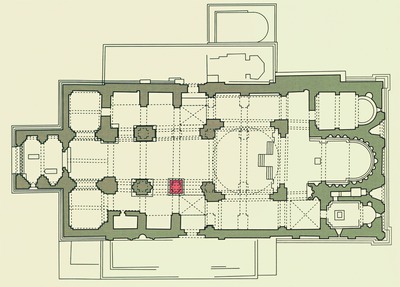 План кафедрального собора Светицховели (красным цветом показано местоположение Животворящего Столпа)
