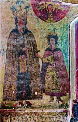 Ктиторский портрет царицы Картли Мариам Дадиани и ее сына Отии Гуриели. Роспись юго-вост. столпа. 1634–1635 гг. Фото: В. А. Заварицкая