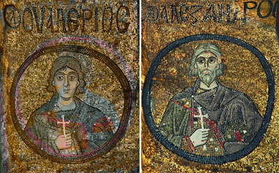 Возможно, независимо от Новгорода и иных рус. центров из столицы Византии были получены святыни С. м., вложенные в неск. личных реликвариев, созданных в Суздальско-Нижегородском княжестве: напр., часть мощей в ковчеге-мощевике кнг. Марии, 1409/10 г., супруги кн. Даниила Борисовича (ныне в ГММК; Христ. реликвии. 2000. С. 53. Кат. 7; Царский храм. 2003. С. 257. Кат. 91; Моршакова. 2013. С. 200. Кат. 41); не исключено, что они были привезены из К-поля свт. Дионисием, архиеп. Суздальским, вместе с частями Страстей Господних, положенных в ковчег 1383 г., известный в летописях как «Страсти большие» (см. ст. Ковчег архиепископа Дионисия Суздальского). В ковчег-мощевик кн. Ивана Даниловича, сына кнг. Марии (1413/14, ГММК), было заключено, согласно надписи на торце, «миро» С. м. (Христ. реликвии. 2000. С. 55. Кат. 8; Моршакова. 2013. С. 205. Кат. 42). Известно, что в юго-вост. части Св. Софии (Великой церкви) К-поля древнерус. паломники поклонялись мощам С. м. в каменном ларце, стоявшем на пьедестале («на столпци»). К к-польским частицам, вероятно, восходит та, что была положена в золотой нательный крест, к-рый известен под названием Филофеевского как дар прп. Сергию Радонежскому от К-польского патриарха Филофея Коккина. Состав его мощевых вложений очень сходен с ковчегами суздальско-нижегородских князей, крест датируется нач. XV в., среди возможных его владельцев - Суздальский кн. Семен Дмитриевич, постригшийся в Троице-Сергиевом мон-ре, или его вдова; часть от мощей С. м. была вложена и в серебряный ковчег-мощевик, когда золотой Филофеевский крест находился уже в лавре (Кучкин В. А. Сергий Радонежский и «филофеевский крест» // ДРИ. 1998. [Вып.:] Сергий Радонежский и худож. культура Москвы XIV-XV вв. С. 16-22; Пуцко. 2006. С. 84, 89; Троице-Сергиева лавра. 2002. С. 61, 204. Кат. 7).