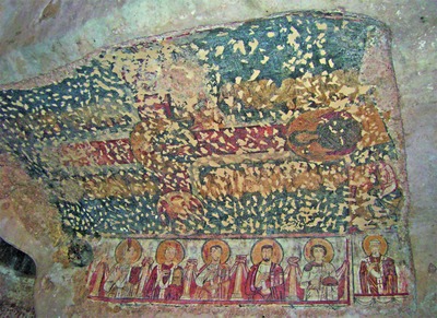 Во фресках лишь нек-рых каппадокийских храмов С. м. изображены как воины, в доспехах и с оружием,- в ц. прор. Иоанна Предтечи в Чавушине VII-VIII вв. (Jolivet-Lévy. 1991. P. 25 (это могут быть Мелитинские мученики (пам. 7 нояб.)); в большинстве случаев имена утрачены. В мученических одеждах святые написаны в ц. Феодора (Панджарлык-килисе) в Ургюпе, IX-X вв.; в ц. прор. Иоанна Предтечи (№ 4) в Гюллюдере, между 913 и 920 гг.; в ц. св. Апостолов (Куббели-килисе № 1) в Соганлы, 1-я пол. X в.; в Нов. Токалы-килисе, Гёреме, 50-е гг. X в., кон. X в. (сохр. имена Клавдия, Илиана, Лисимаха и Гаия); изображения Кандида, Дометиана и Евтихия уцелели в церкви № 11 (мч. Евстафия), Гёреме, X в. (Ibid. P. 37, 96, 107, 115, 219, 264). Также с копьями они изображены в церкви № 3 в Гёреме (X в.), верхом на конях - в Карабаш-килисе, 1060-1061 гг., и в Ала-килисе в Белысирме, XI в. (Ibid. P. 16, 19, 268, 329). В росписях Каппадокии IX-XII вв. их образы - обязательный элемент декорации храма (Ibid. P. 342; Захарова. 2011. С. 199). В росписях работы к-польских мастеров в Нов. Токалы-килисе святые показаны почти в полном составе в наосе и частично на алтарной преграде (Захарова. 2011. С. 212. Рис. 12 - лик Феодула, безбородого, юного, с волосами чуть длиннее ушей, подобного вмч. Прокопию Кесарийскому), как и в Кылычлар-килисе. В Кылычлар-Кушлук-килисе (Б. Голубятня) в Чавушине (ок. 963-969), они окружают имп. Иоанна I Цимисхия и военачальника Мелию, в левой руке мученики держат меч, в правой - копье (Саенкова, Герасименко. 2008. Ил. на с. 204; Захарова. 2011. С. 213). Сохранились имена Клавдия, Ираклия, Александра (назван Алексием) и Феофила. В нартексе Йыланлы-килисе в долине Ихлара (2-я пол. IX - нач. X в.) они показаны рядом со сценой «Страшный Суд» как свидетели - одинаковые фигуры в просто написанных одеждах контрастного цвета, крест в правой руке (Захарова. 2011. С. 198, 200. Рис. 1, 2); белыми литерами выполнены подписи.