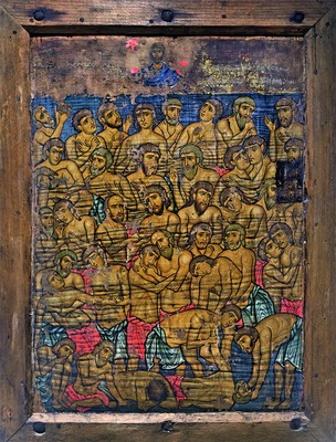 Очевидно, с календарем и минейными циклами связано появление С. м. на аналойных иконах, древнейших - новгородского происхождения: в составе икон-таблеток из Св. Софии Новгородской, ок. 1500 г., со Спасителем на лицевой стороне (ГТГ); в паре с композицией «Обретение главы прор. Иоанна Предтечи» на обороте иконы-таблетки, ок. 1500 г. (ГЭ), где на лицевой - «Св. Троица (Гостеприимство Авраама)»; московско-новгородской школы 2-й трети XVI в. с «Благовещением» на лицевой стороне (ЦАК МДА; «Угодно в очах Божиих дело сие»: Сокровища ЦАК МДА. Серг. П., 2004. С. 62-63); московской (?) рубежа XVI и XVII вв. с композицией «Обретение главы прор. Иоанна Предтечи» на обороте (ИркОХМ; Госкаталог РФ. № 11023783); в паре с композицией «Благовещение» - на иконе-таблетке XVIII в. (СИХМ; Госкаталог РФ. № 18619091). Ландшафт в композиции мог получить иную трактовку относительно визант. извода, так что баня оказывается в отдалении от озера, а воин-отступник стоит посреди отдельного потока; мучеников сопровождают христ. святитель и 2 диакона, как на золотофонной иконе-пяднице, некогда имевшей драгоценный оклад, XVI в. (ГИМ; Госкаталог РФ. № 11984641). Общую композицию имеют стороны аналойных таблеток, с небольшими изменениями,- из ЦАК МДА и ИркОХМ (Госкаталог РФ. № 11023783): сходны архитектурные особенности бани в виде палаццо с круглым фронтоном и колонками, а также позы 2 воинов - отступника, скрывающегося в бане, и стражника, снимающего одежду; обе могут быть отнесены ко 2-й трети XVI в. С. м. воспроизведены во фрагменте черневого декора на золотом кресте-мощевике, вложенном ок. 1638 г. «по душе» думного дьяка Грамотина в Троице-Сергиеву лавру (Ризница Св.-Троицкой Сергиевой лавры / Науч. ред.: И. А. Стерлигова. Серг. П., 2014. Т. 1. С. 34, 37. Ил. 19). Среди храмовых икон, связанных с престолами во имя Сорока мучеников, древнейшей является их икона в Свято-Успенской Псково-Печерской лавре: деревянная церковь с престолом их имени была вынесена с монастырской территории в 1540 г. на посад (сохранившееся здание близ св. врат нач. XIX в.), в совр. Сретенской ц. обители на левом клиросе находится икона С. м. под записью и в позднем окладе.