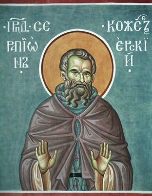 Образ С. известен в монументальной живописи посл. четв. XIX - нач. XX в. Он изображен в группе подвижников XVII в. в росписи галереи рус. святых, ведущей в пещерную ц. прп. Иова Почаевского в Почаевской Успенской лавре (работа иеродиаконов Паисия и Анатолия, кон. 70-х гг. XIX в.- 1888, поновление - 70-е гг. XX в., ок. 2010). В 1901-1903 гг. в каменной Успенской ц. Кожеезерского мон-ря крестьяне Селецкой вол. Холмогорского у., отец и сын Томиловы, расписали стены. В приделе прп. Никодима Кожеозерского они подрядились написать сцены из жизни святого, в т. ч. «против западной стены на колонне - исцеление расслабленного от болезни и где прп. Никодим явился вместе с строителем Серапионом» (ГААО. Ф. 29. Оп. 4. Т. 3. Д. 1657. Л. 6 об.; росписи не сохр., в мон-ре есть лишь небольшие фрагменты). В 2009 г. архангельский иконописец И. И. Лапин выполнил в технике фрески поясной образ С. в Успенской ц. Архангельска. Святой представлен с раскрытыми перед грудью ладонями; на нем коричневая мантия, надетая поверх схимы; волосы густые, с проседью, окладистая борода расходится косицами; надпись: «Прпд Серапïωнъ Коже(е)зерскïй».