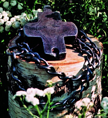 В келье-алтаре Преображенской ц. в центре располагался престол, в сев.-вост. углу - жертвенник. На престоле (в нач. XX в.) помещался медный литой 8-конечный крест С.- благословение матери, его преподобный постоянно носил на груди и благословлял им приходящих к нему (фотографии креста нач. XX в. см.: Серафим (Чичагов). 1903. Вклейка между с. 500 и с. 501; этот крест (с херувимами на штифтах) также снят на фоне широкой «двойной» епитрахили, где видны поручь, мантия, Евангелие, Минея-Четья, см.: Поселянин. 2003. С. 96). В 1903 г. при освидетельствовании св. мощей преподобного «под руками приснопамятного о. Серафима обнаружен медный литой крест размером приблизительно в три вершка» (Акт освидетельствования св. останков прп. Серафима, Саровского Чудотворца // МОб. 1903. № 11. С. 5).