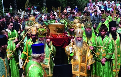 18 июля 1991 г. Синод РПЦ благословил «открытие Троицкого Серафимо-Дивеевского монастыря в п. Дивеево Нижегородской епархии» (Там же. С. 118). 30 июля мощи прп. Серафима прибыли в Дивеево. На праздник прп. Серафима, 1 авг. 1991 г., патриарх Алексий II отслужил Божественную литургию перед Троицким собором, за которой причастились тысячи паломников.