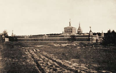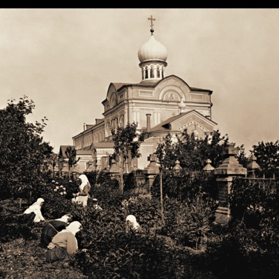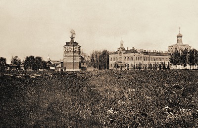 В 1882 г. был заложен 3-этажный корпус из красного кирпича, называемый Больничным (часть его занимали больничные помещения), или Игуменским (в нем находились и покои игумении). Вост. часть этого корпуса занимал 2-ярусный Серафимо-Сергиевский храм. В нижней части здания располагалась ц. прп. Серафима Саровского (1903), предназначавшаяся для погребения благотворителей. На уровне 2-го и 3-го этажей находилась ц. прп. Сергия Радонежского (1900) с 2 боковыми (на хорах) приделами - во имя свт. Николая Чудотворца и мц. Клавдии Римской и во имя равноап. кнг. Ольги и мч. Сергия. Они были устроены в честь небесных покровителей благодетелей мон-ря: купцов Петрова и Сергея Дмитриевича Кузьмичёва с супругами. Здесь проходили вседневные службы.