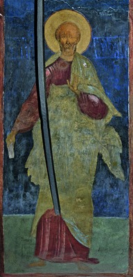 В монументальной живописи изображение С. включается также в состав святых, размещенных не в минейном цикле в притворе (на галерее), а в основном объеме храма среди образов того же чина святости, напр. в рус. памятниках: в ц. свт. Николая Чудотворца (Николы Мокрого) в Ярославле (1673-1675), в ц. ап. Иоанна Богослова в Ростове (1683), в соборе Успения Пресв. Богородицы в Троице-Сергиевой лавре (1684), в Троицком соборе (Зачатия прав. Анны) Спасо-Иаковлевского монастыря в Ростове (1689).