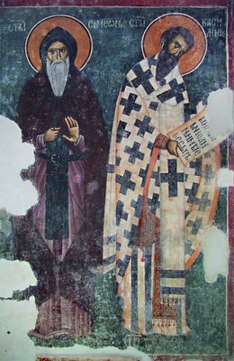 Парные изображения С. М. и свт. Саввы I также прочно вошли в состав иконографических программ мн. памятников позднепалеологовского и поствизантийского периодов (церкви праведных Иоакима и Анны в мон-ре Студеница (1314-1315), вмч. Никиты в Чучере близ Скопье (2-е десятилетие XIV в.), кафоликон монастыря Хиландар (1318-1320) и др.) (Милошевић. 1979. С. 302-303). На фреске юж. фасада охридской ц. свт. Николая Больничного (1345) помимо С. М. и свт. Саввы I изображены также сербский правитель Стефан Душан, его супруга кор. Елена, его сын молодой кор. Урош, патрон храма свт. Николай и архиеп. Охридский Николай. Групповой портрет с включением ряда исторических личностей мог возникнуть как реакция на достигнутый компромисс между сербскими властями и Охридом, присоединенным к Сербии в 1334 г.: Охридская архиепископия сохраняла автокефалию, но признавала серб. власть и автокефальность Сербской Православной Церкви. В данной композиции С. М. изображен весьма схематично, с более короткой бородой и без свитка, что объясняется, по всей видимости, малой осведомленностью художника.