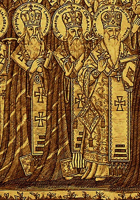 Сложение личной иконографии С. связано с Киево-Печерским мон-рем, в первую очередь с деятельностью мастеров, работавших над созданием цикла гравюр для 1-го издания Патерика, или Отечника, Печерского (К., 1661, далее КПП), отпечатанного в типографии обители. В это издание (повторения - в изданиях 1678 и 1702) в «Пристежение ко всем трем частям Патерика» вошла предваряющая Житие С. ксилография (без указания авторства) с его изображением. Святитель представлен в рост, фронтально, в полном богослужебном облачении (подризник, набедренник, епитрахиль, фелонь, омофор, на голове митра с крестом наверху), держащим перед собой в правой руке напрестольный крест, а в левой - жезл со змеевидным навершием. Судя по морщинам на лбу и возле глаз, он запечатлен в преклонном возрасте. Длинные волосы 2 прядями лежат по плечам, борода ниже средней длины, на конце слегка разделена надвое. Над головой святителя во фронтальной проекции изображен голубь (Св. Дух), от к-рого исходит сияние в виде лучей. С. показан на фоне, в к-ром соединены архитектурно-пейзажные и интерьерные элементы: позади - городские строения на холмистой местности, справа от него - покрытый скатертью стол с письменными принадлежностями и книга, в к-рой читается начало текста Жития прмч. Евстратия Печерского. По сторонам нимба именующая надпись: «'