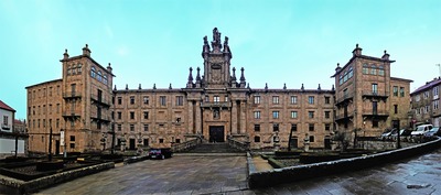 Рубеж XV и XVI вв. стал поворотным в истории С.-де-К. В 1486 г., во время войны с Гранадским эмиратом, последним мусульм. гос-вом на Пиренейском п-ове, «католические короли» Фернандо II Арагонский (1479-1516) и Изабелла I Кастильская (1474-1504) совершили паломничество в С.-де-К. После победы над Гранадским эмиратом (1492) королевская чета в благодарность за помощь апостола в завершении Реконкисты даровала кафедре С.-де-К. новые привилегии и сделала крупные пожертвования. Среди прочего был учрежден налог «дань Гранады» (Voto de Granada), треть к-рого с 1499 г. передавалась на строительство и содержание учрежденного Королевского госпиталя, где могли останавливаться паломники и оказывалась помощь больным. Строительные работы на сев. стороне пл. Обрадойро осуществлялись в 1501-1527 гг. и стали важным этапом в обновлении архитектурного облика города. Этому же способствовала деятельность 3 архиепископов из рода Фонсека, к-рые в период с 1460 по 1523 г. последовательно занимали кафедру С.-де-К. При архиеп. Алонсо III де Фонсека-и-Ульоа (1507-1523; архиепископ Толедо в 1523-1534) на юж. стороне пл. Обрадойро было построено здание Коллегии св. Иеронима, где, согласно планам архиепископа, мецената и покровителя искусств, должны были жить художники и неимущие студенты. В 1495 г. в городе был основан ун-т, статус которого в 1504 г. был подтвержден буллой папы Римского Юлия II (1503-1513). Первоначально университетская корпорация размещалась во дворце Фонсека-и-Ульоа (др. название - Коллегия Фонсека), который стали строить при архиеп. Алонсо III де Фонсека на месте прежней семейной резиденции. Строительство продолжалось до сер. XVI в., а главный фасад в стиле платереско появился в 1688 г.