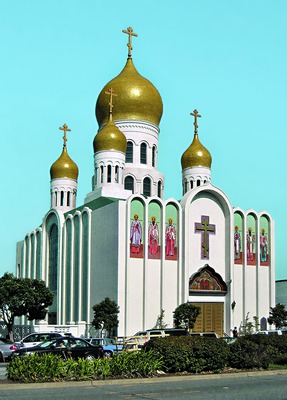 После продажи в 1867 г. Россией Аляски и Алеутских о-вов центром Православия в Сев. Америке стал Сан-Франциско, где в 1868 г. возник Александро-Невский приход, окормляемый прибывшим с Аляски свящ. Николаем Ковригиным (постоянного молитвенного здания община не имела, службы проводились на церковнославянском, сербском, греческом и английском языках). 28 июня 1872 г. в Сан-Франциско из Ситки (бывш. Новоархангельск, ныне в шт. Аляска) была официально перенесена образованная в 1870 г. кафедра епископа Алеутских о-вов и Аляски (см. Алеутская и Североамериканская епархия). Фактически Алеутский еп. Иоанн (Митропольский) пребывал в Сан-Франциско с сент. 1870 г.; епархиальные консистория, ризница, архив, б-ка, архиерейская школа были переведены из Ситки в Сан-Франциско в 1871-1872 гг. В марте 1881 г. в приобретенном в Сан-Франциско 3-этажном здании был устроен кафедральный собор во имя блгв. вел. кн. Александра Невского (в 1888 переосвящен во имя свт. Николая Чудотворца, в 1889 (после пожара) - во имя свт. Василия Великого, в 1897 - во имя Св. Живоначальной Троицы). В том же здании размещался архиерейский дом. В период нахождения епархиальной Алеутской кафедры в Сан-Франциско на ней пребывали епископы Иоанн (Митропольский; до 1877), Нестор (Засс; 1878-1882), Владимир (Соколовский-Автономов; впосл. архиепископ, 1887-1891), Николай (Зиоров; впосл. архиепископ, 1891-1898), свт. Тихон (Беллавин; впосл. патриарх Московский и всея России, с 1898). В сент. 1905 г. Североамериканская епархиальная кафедра была перенесена из Сан-Франциско в Нью-Йорк. В 1906 г. во время землетрясения в Сан-Франциско была разрушена Троицкая ц. Новый храм во имя Живоначальной Троицы был построен в 1909 г.