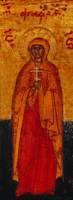 В поздней рус. традиции иконография святой не претерпевает значительных изменений - А. изображается в хитоне и мафории вместе с др. святыми, напр., на иконе XVI в. «Константин и Елена, мц. Агафия» (собрание А. Попова в Париже); на иконе «Достойно есть» с избранными святыми 1602 г. (ГТГ) - А. представлена на поле; на вологодской минейной иконе на февраль кон. XVI в. (ВГИАХМЗ); на минейной иконе нач. XVIII в. (ЦАК МДА) - с крестом в правой руке.